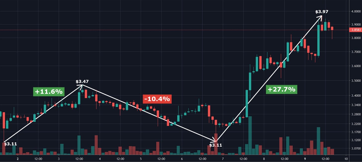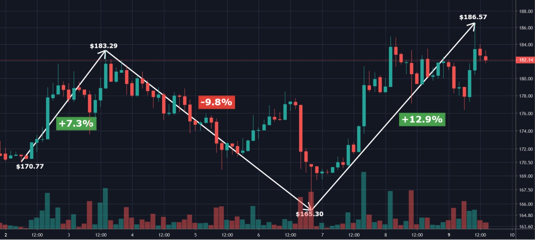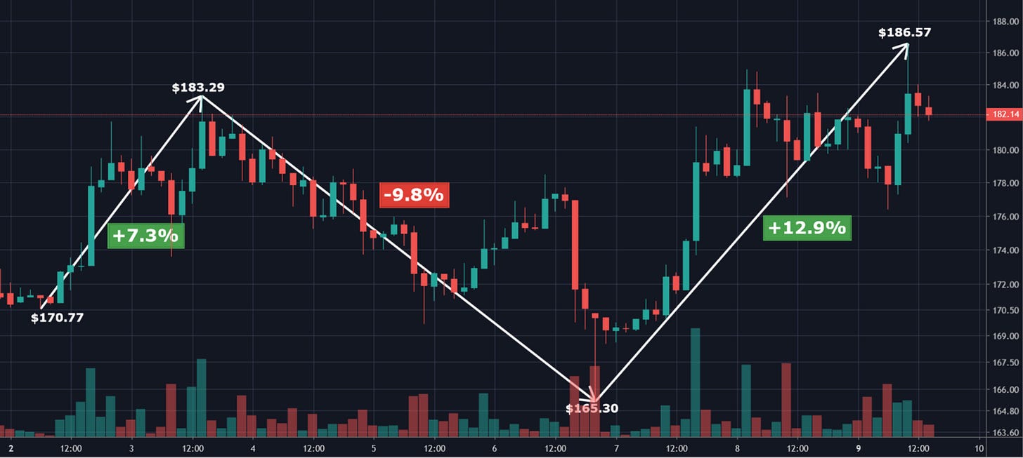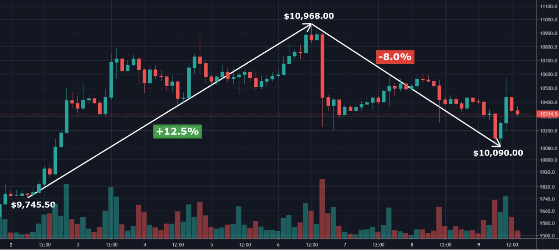 If we were to perfectly trade the market we could have turned $100 into $121.50 in just one week with just four trades.