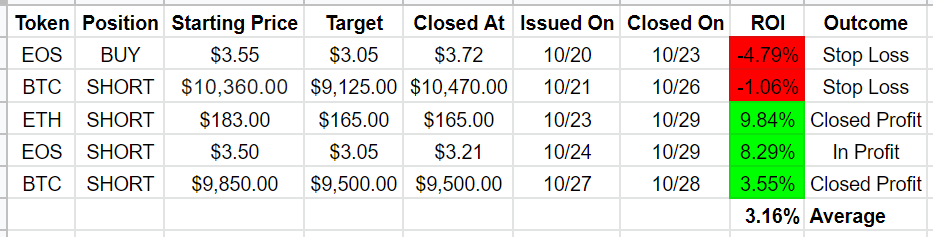 Overall our trades returned 3.16% over the past week and were 60% accurate.